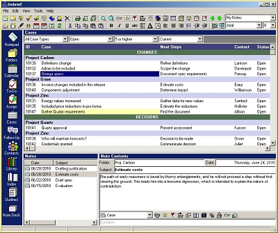 Cases are used for managing significant events, such as Issues, Changes, Decisions, Risks, Milestones, Initiatives Notes can be taken for each case.
