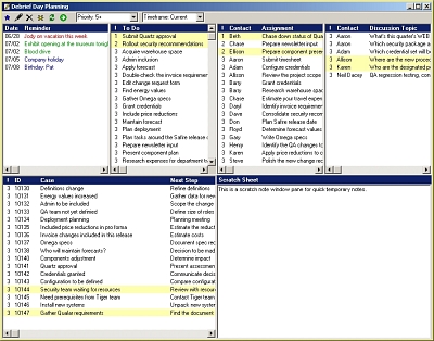 To-dos, assignments, discussions, cases, and reminders can be seen in one view. Urgent ones can be highlighted to create a "hot list" and plan the day. Tasks can be selected to produce a plan for the day.