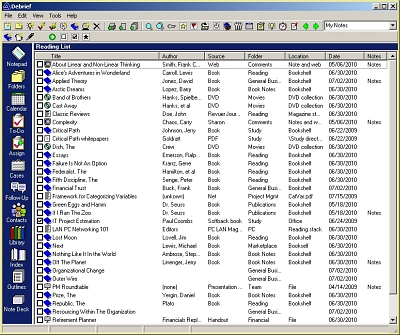 The reading list tracks material such as books, journals, articles, and presentations. A personal library is automatically created, and notes can be taken about these materials.